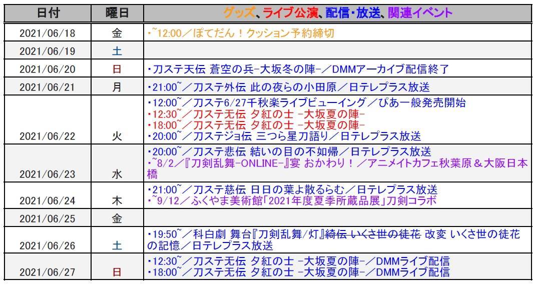 21年 刀剣乱舞 最近の発売 予約中のグッズ イベントスケジュール 最終更新8 16 非公式 刀剣乱舞攻略速報
